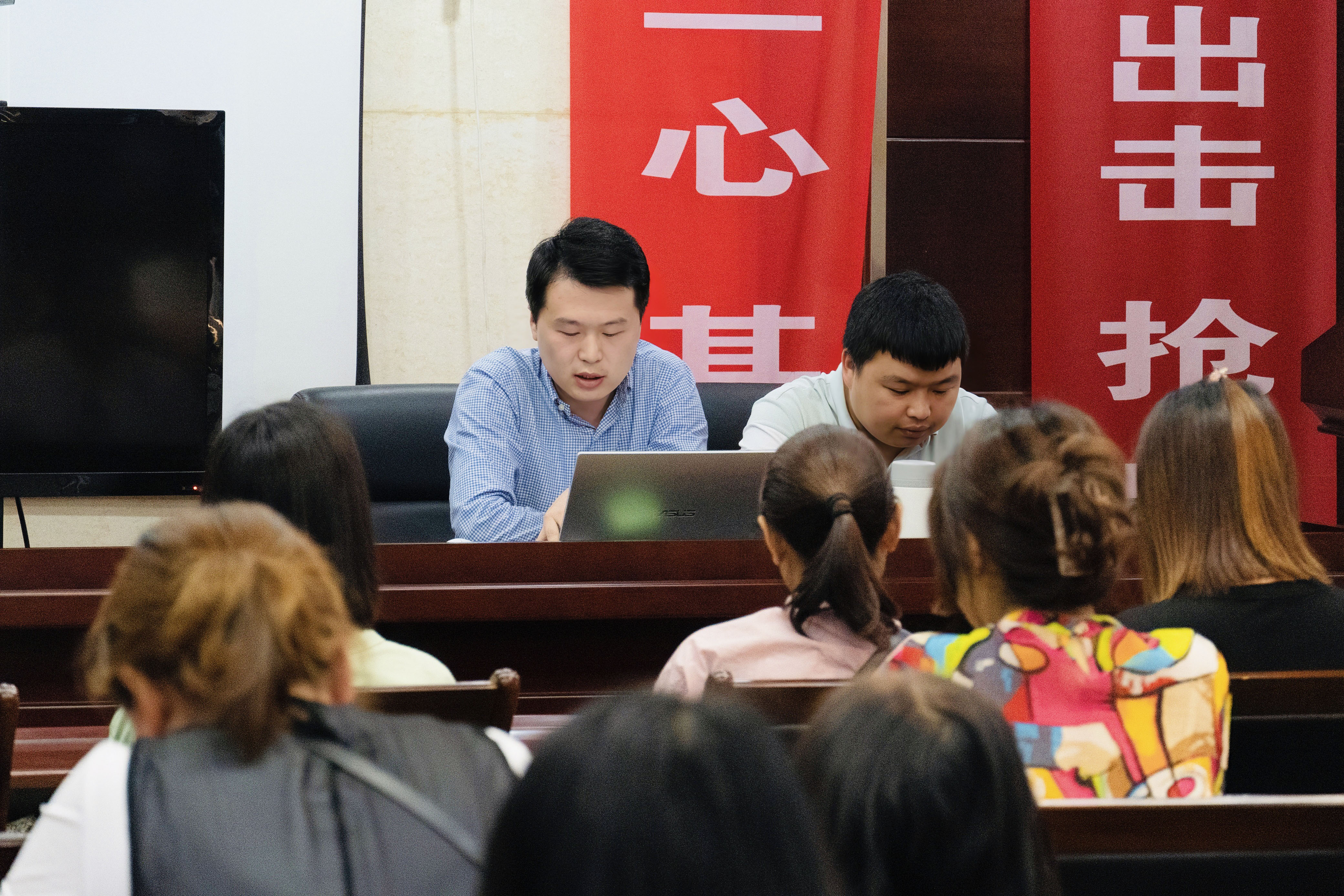 溢华教育工作人员精心布置会场,讲座前许多家长提前赶到会场,签到入场。