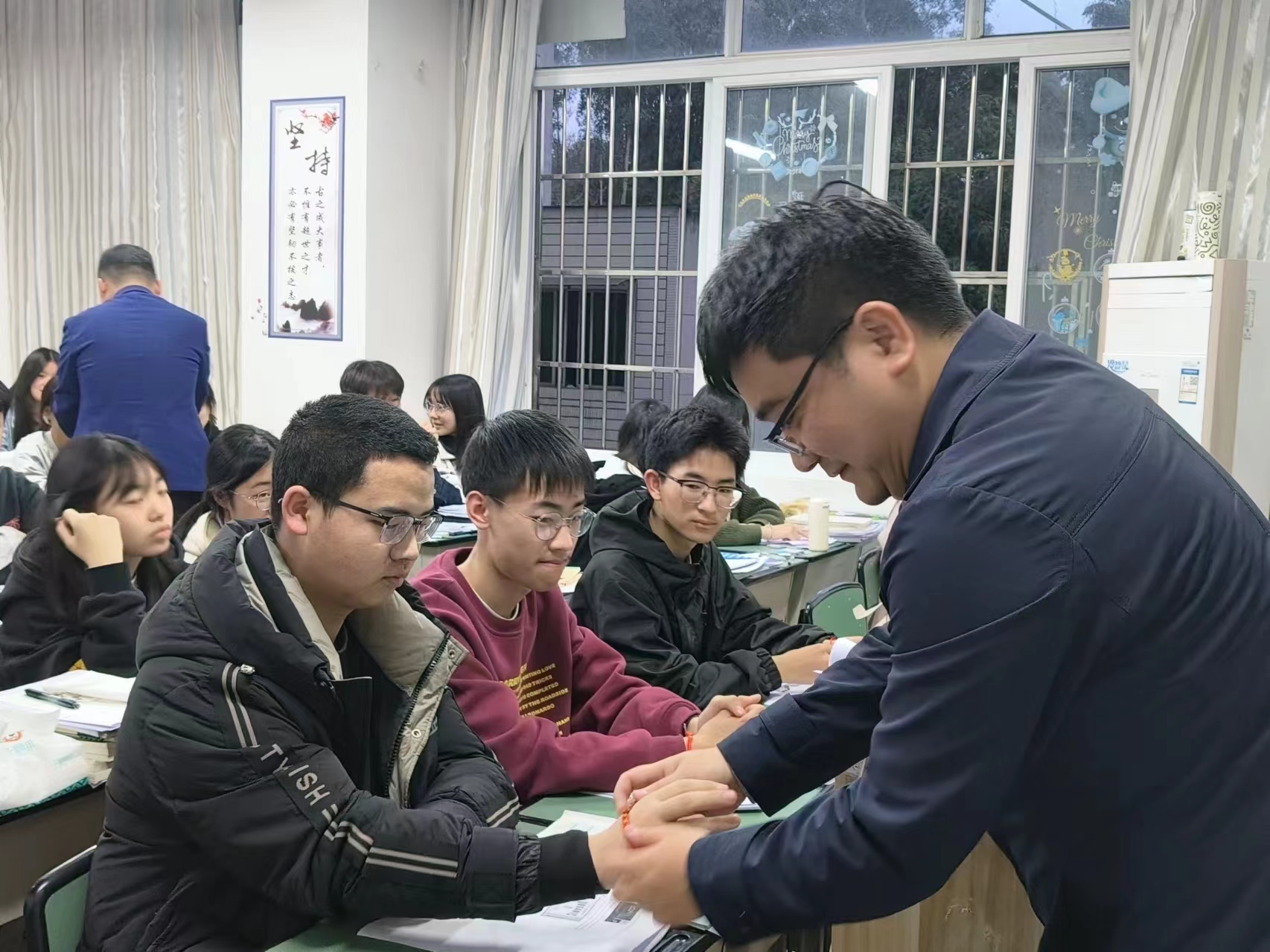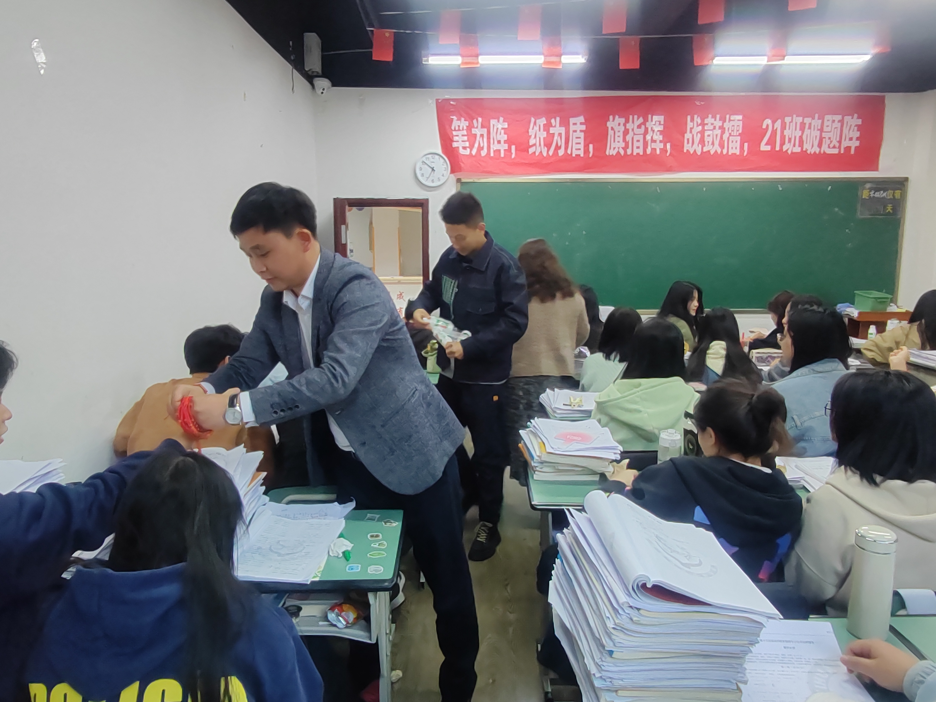 红色的手绳融入了老师深深的祝福,一根红绳将师生的心连在一起,“金榜题名”是我们在4月共同的期盼!整个互动的过程欢声笑语,学生们倍感亲切。
